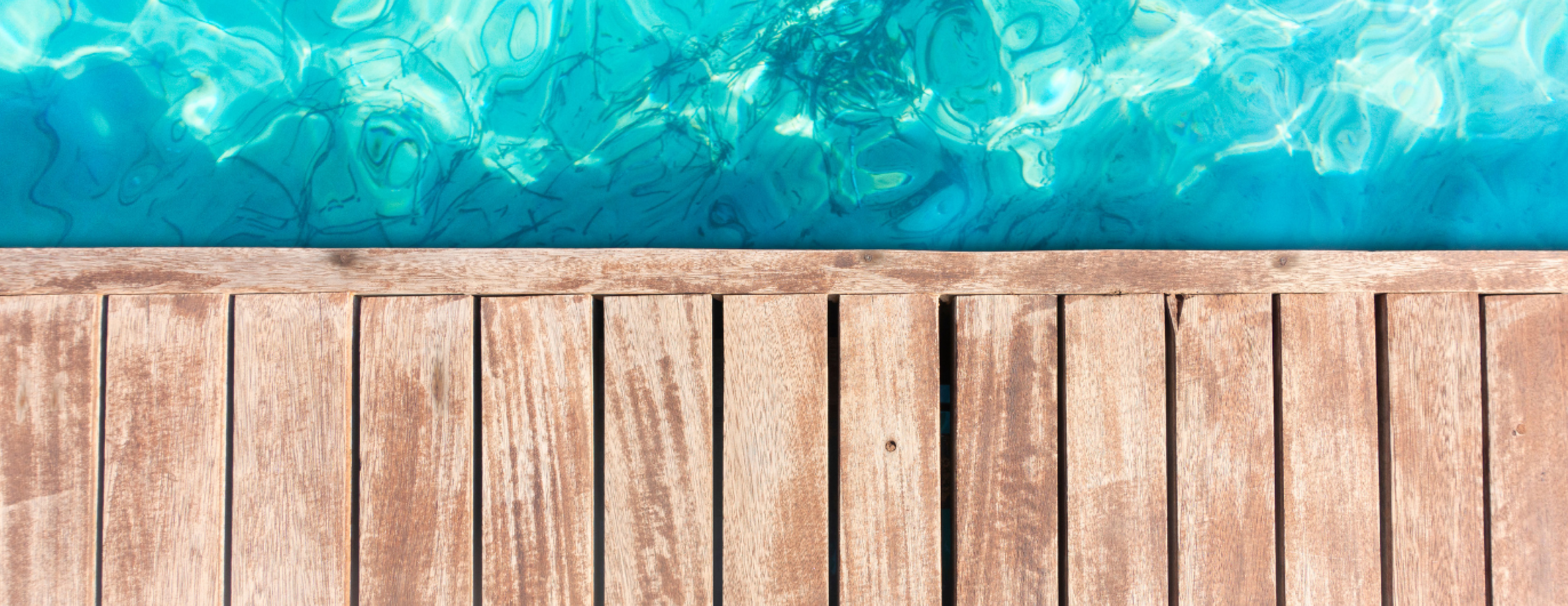 For a durable and stylish pool deck, composite or PVC decking from top brands like Trex, Azek, and Fiberon is the perfect choice.